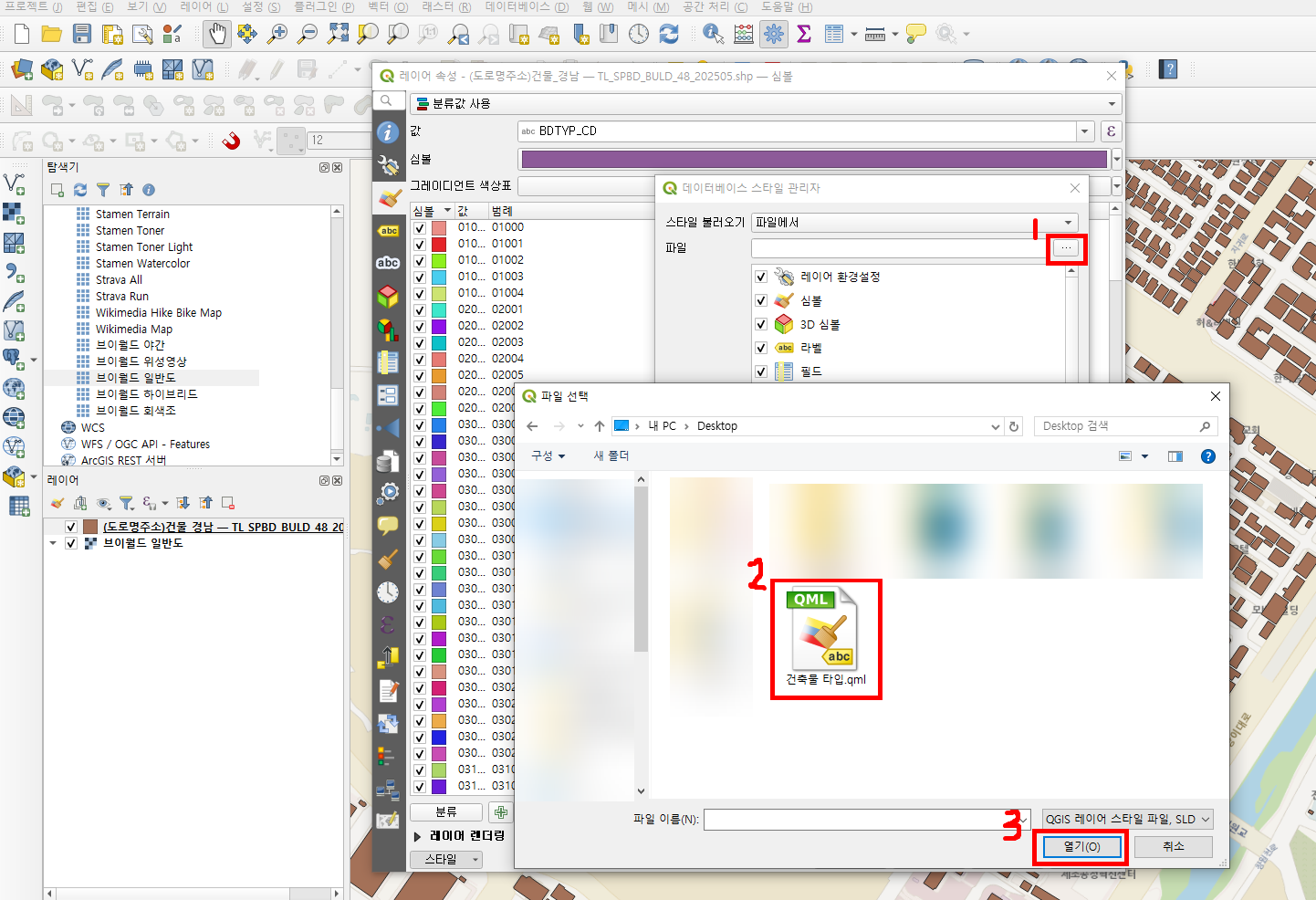 이러한 불편을 해소하기 위해, 저는 **각 숫자 코드에 해당하는 건축물 용도를 한글로 변환한 QGIS 스타일 파일(QML)**을 미리 제작하였습니다.