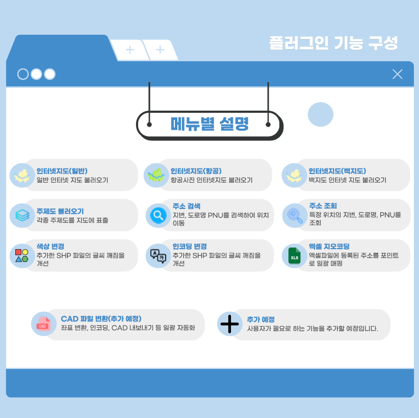 | 브이월드 플러그인 주요기능 |